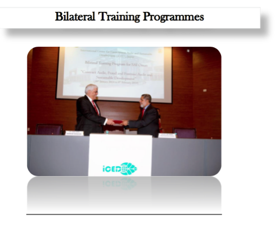 iCED also contributes to build capacity of other Supreme Audit Institutions under Bilateral Training Programmes. The Centre has designed and delivered customized training programmes for participants from Oman and Bangladesh as of now. The bilateral training programmes are an effective instrument for strengthening ties between the SAIs and respective countries.