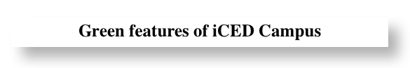 The buildings interact with their environment in various ways. Throughout their life cycles, from construction to operation and then demolition, they consume resources in the form of energy, water, materials, etc. and emit wastes either directly in the form of municipal wastes or indirectly as emissions from electricity generation. At iCED, several green features are a hallmark of both construction as well as use of buildings. iCED campus is developed keeping in mind the need to showcase concepts of sustainable development. Green practices were followed during pre-construction stage, building planning and construction stage as well as its operation and maintenance stage.