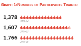 RTI, Kolkata conducts round the year training programmes on both EDP and General (non-EDP) courses. Graph 1 gives a synoptic view of the number of participants trained at RTI, Kolkata.
